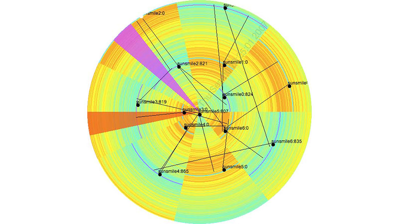 Bonding Energy consists of a set of Sunsmile devices that collect and measure solar energy from seven geographically distributed sites around New York State: Columbia University, NYC; Rensselaer Polytechnic Institute, Troy; University of Buffalo; Colgate University, Hamilton; free103point9's Wave Farm, Acra; Experimental Television Center, Owego; and The Redhouse Arts Center, Syracuse. The light energy reaching the Sunsmiles' solar panels fuels a collaborative real-time data visualization on Turbulence.org. Part of the larger Cross Current Resonance Transducer (CCRT) project in which the artists are developing systems for monitoring, manipulating, and interpreting natural signals such as tidal patterns and wind, Bonding Energy is focused on solar energy. Bonding Energy is a model for distributed microenergy generation, inspired by SETI@home — which harnesses the collective power of personal computers distributed worldwide — and microcredit, a loan system that supports poor or unemployed people in underdeveloped countries. Small contributions from many individuals can produce significant results.