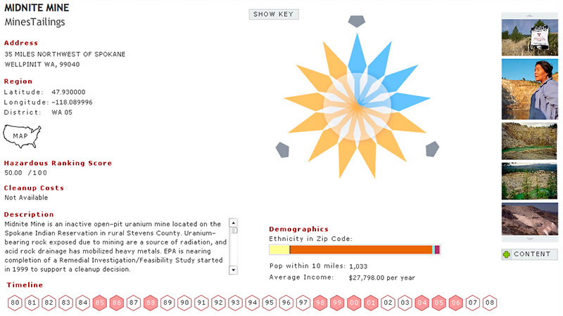We began the journey in the New York City area and worked our way across the country, ending the year in Hawaii. The archive consisted of 365 visualizations of some of the worst toxic sites in the U.S., roughly a quarter of the total number on the on the Superfund’s National Priorities List (NPL).