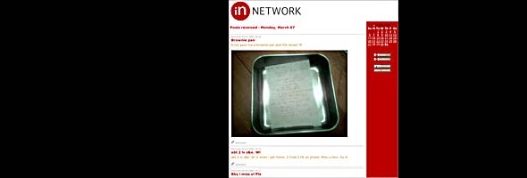 La conditio sine qua non è ci siano idee forti e che siano comunicate nel modo giusto; solo in questa maniera si può dire di aver realizzato un lavoro interessante quanto un lavoro realizzato con inchiostro e carta. IN Network mostra così come un artista può realizzare un blog, dimostrando che non è il software ma la persona che lo realizza che fa la differenza. La selezione di ricordi, foto e testi, la consistenza e la disarmante tenerezza dei contenuti, la maniera nella quale gli artisti utilizzano il blog, hanno dato luogo ad un lavoro molto interessante che ha molto in sé del documentario o del film, in cui sono catturate ed editate le scene (espresse in file sonori, testi e fotografie) di giorni e di mesi. Il risultato è senza dubbio modificabile da chi osserva e fruisce e dipende da cosa si clicca ed edita, aumentando l’immersione. IN Network mette a confronto così il pubblico e l’affinità intima tra due amanti, amanti che sono in questo caso tanto distanti fisicamente l’uno dall’altro quanto il loro pubblico.