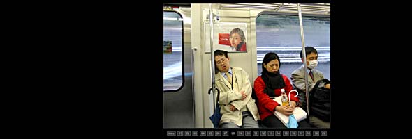Da un mondo immaginario al mondo reale: il lavoro di David Crawford Stop Motion Studies (25) cattura l’atteggiamento e le reazioni di persone incontrate nella metropolitana. Nella serie prodotta per “Turbulence” possiamo vedere le impressioni di Crowford selezionate in una metropolitana di Tokyo. Crawford è influenzato da altri net artisti, in particolare da Heath Bunting (26), e dal suo intendere il mondo come un luogo popolato da moltitudini di network tanto da ritenere che il corpo stesso sia un network. Anche Internet è un sistema di “trasporto”, che passa attraverso segnali elettrici e può essere assimilato al sistema nervoso e alle persone in una metropolitana. Analogamente il mondo è pieno di strutture relate e di sistemi che seguono i nostri desideri e bisogni.