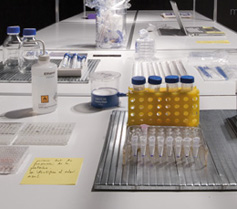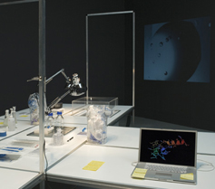 MARTAISAVELSWVRALRIVEIRDEMENESESDASILVAGRACA es la traducción del extenso nombre de la artista en la secuencia de aminoácidos que forman la proteína: mARTA. La secuencia incluye su nombre, pero también el de la familia directa (padre, madre), junto con los apellidos por afinidad (marido), y además de a su propio perfil identitario, alude a la historia a la que pertenece y a su memoria afectiva. El nombre familiar –una convención cultural– es el que establece aquí un interface con la micro-escala biológica. La descripción de la nueva proteína con su nombre –basada en la convención científica– es la membrana que dobla la estructura de la proteína mARTA y proporciona los diversos marcos que componen el retrato. Al producir la proteína mARTA, la artista Marta de Menezes se retrata en una compleja red de relaciones personales que aluden a las identidades de las que forma parte. El proyecto sigue un protocolo claramente científico, afirmado con un lenguaje positivista a la búsqueda de la estructura molecular de la nueva proteína creada artificialmente y que la retrata a través de su extenso nombre. Pero si el protocolo y el lenguaje del Retrato Proteico pertenecen a la ciencia, los procesos y el pensamiento sobre el proyecto pertenecen, claramente, al universo estético y a la reflexión teórica. Retrato Proteico se formaliza a partir de una instalación concebida como laboratorio en la que, a partir de fotografías, textos, correspondencia policopiada, vídeos, instrumental e imágenes científicas se reconstruye el proceso que ha permitido visualizar mARTA. Su autora, Marta de Menezes (Lisboa, 1975) se graduó en Bellas Artes en la Universidad de la capital portuguesa y posteriormente amplió su formación en Historia del Arte y Cultura Visual en la Universidad de Oxford. Fue durante algún tiempo Artista Residente en el College of Science, Technology and Medicine de Londres y es una personalidad destacada en el ámbito de la investigación bio-artística. |
