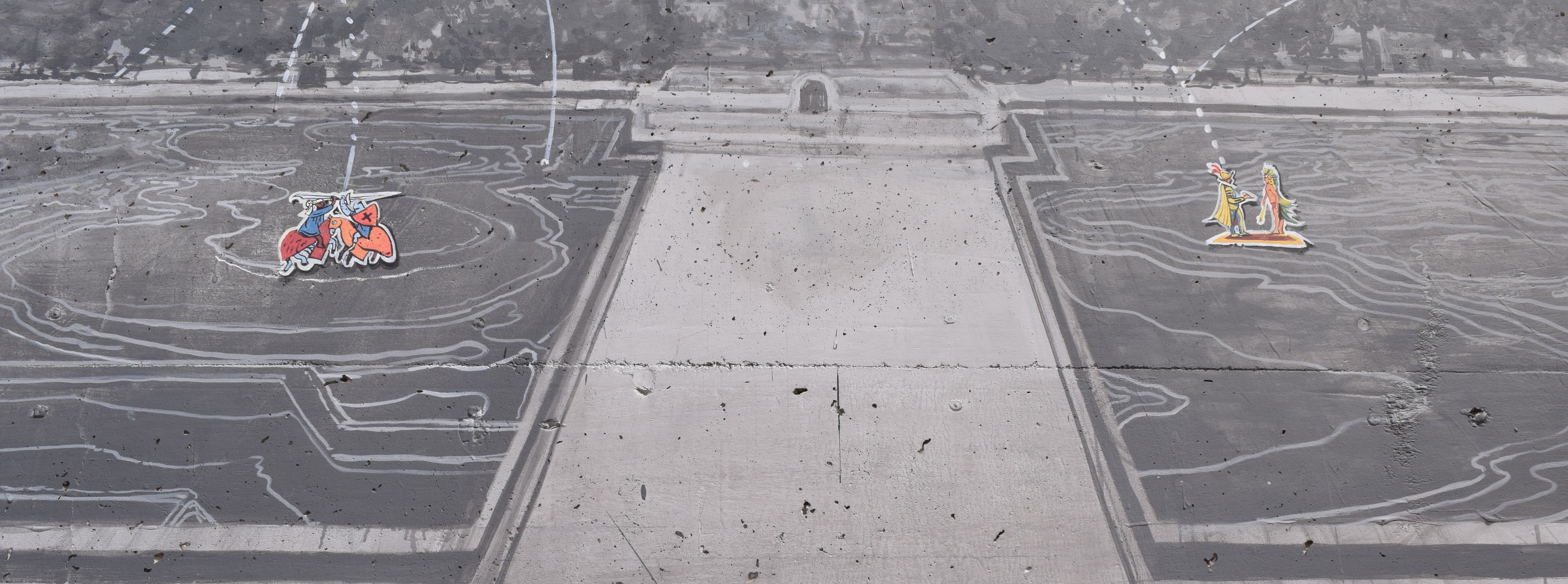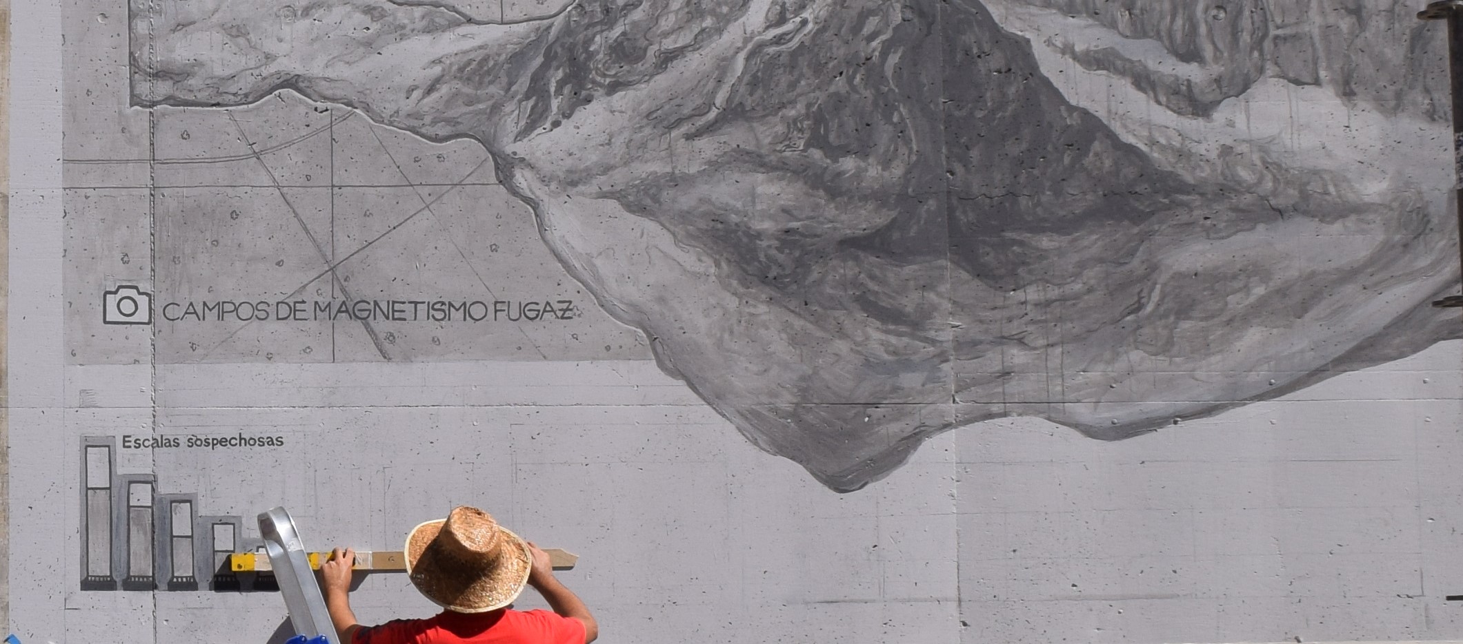 El proyecto se articula en dos ámbitos: un mural en el espacio exterior de acceso al museo y un conjunto de cinco intervenciones en diferentes enclaves turísticos de Extremadura. El mural es una suerte de mapa que ofrece una serie de pistas y coordenadas conceptuales invitando al público a recorrer esos enclaves a la luz de las cinco intervenciones, como si se tratara a la vez de la casilla “cero” de un juego que se desarrolla simultáneamente en un territorio real y en el simbólico. De este modo el proyecto apela al papel activo del público en la construcción de la obra de arte, entendida también como una herramienta social capaz de generar un diálogo entre la ciudadanía y su contexto social a la búsqueda de nuevos imaginarios.