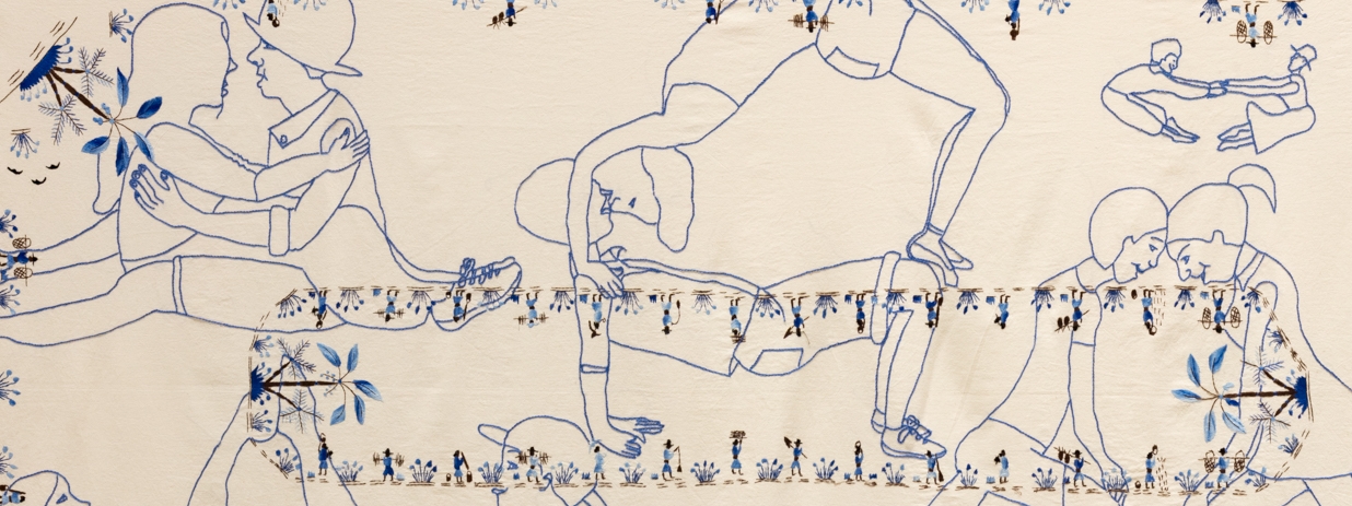 Victoria Gil no solo homenajea a mujeres conocidas que han pasado a la historia con nombre propio como Teresa de Ávila o las piratas Mary Read y Anne Bonny, entre muchas otras, sino también a las ciudadanas anónimas cuyas vidas y labores son tan fundamentales como las de las otras: trabajadoras del campo, cuidadoras, colonizadas palilleiras gallegas o bordadoras extremeñas en piezas en las que recupera la memoria doméstica de las mujeres que los relatos oficiales han obviado. Para ello, recurre a las artes textiles como lenguaje artístico entendiendo que la costura, el bordado y el tejido no son un pasatiempo de las mujeres relegado al ámbito de lo doméstico, sino una acción política feminista con el potencial de activar debates sociales.