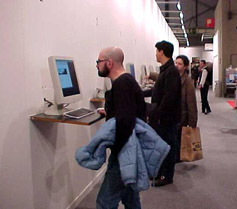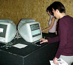 ![]() | ARCO' 00 Galería Virtual 2000 | La primera galería virtual creada por un museo español de arte contemporáneo fue presentada en la edición del año 2000 de la Feria Internacional de Arte Contemporáneo ARCO. Para su instalación, ocho placas de pizarra soportaban ocho pantallas conectadas a otros tantos ordenadores. |